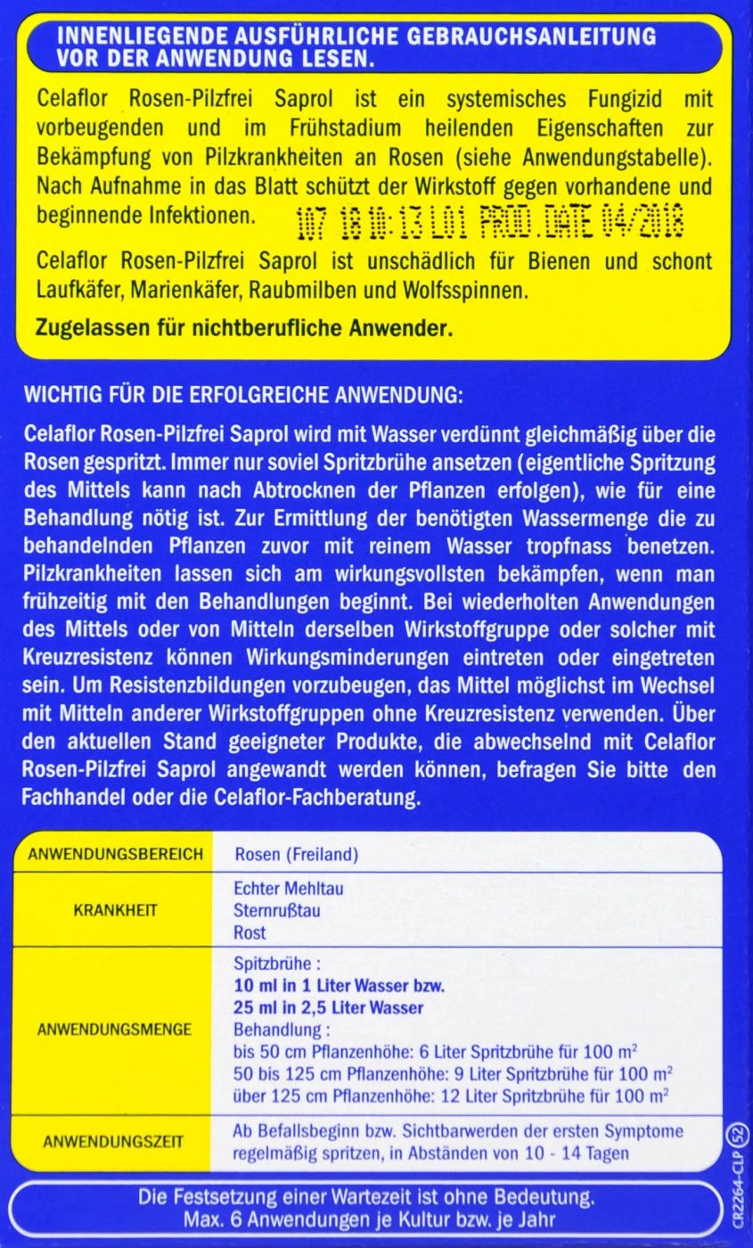 Celaflor Rosen-Pilzfrei Saprol - 100 Ml -Gartenbedarf Geschaft Celaflor20Rosen Pilzfrei20Saprol 32126 L01