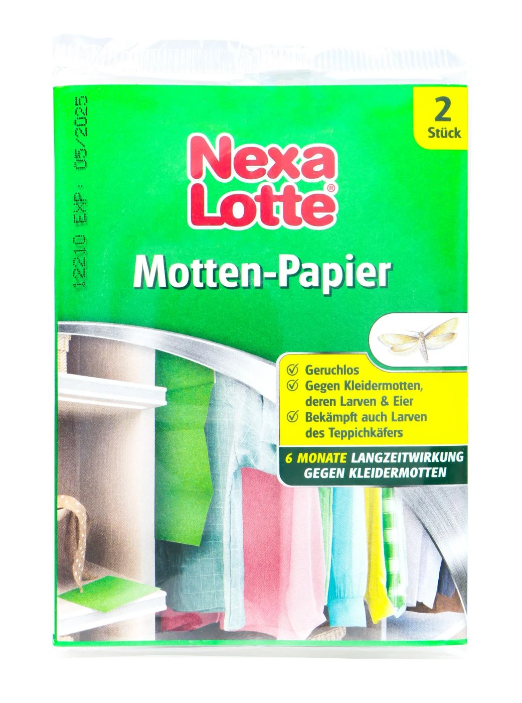 Motten sind schlicht und einfach nervig. Wie wäre es wenn du sie genauso schlicht und einfach nervst? Denn das Mottenschutz-Papier von Nexa Lotte ist nämlich schlicht und einfach. Du hängst oder klebst den Klebestreifen in den Schrank oder kannst es in die betroffene Schublade, Truhe etc. legen. Für dich ist das ganze geruchslos.
